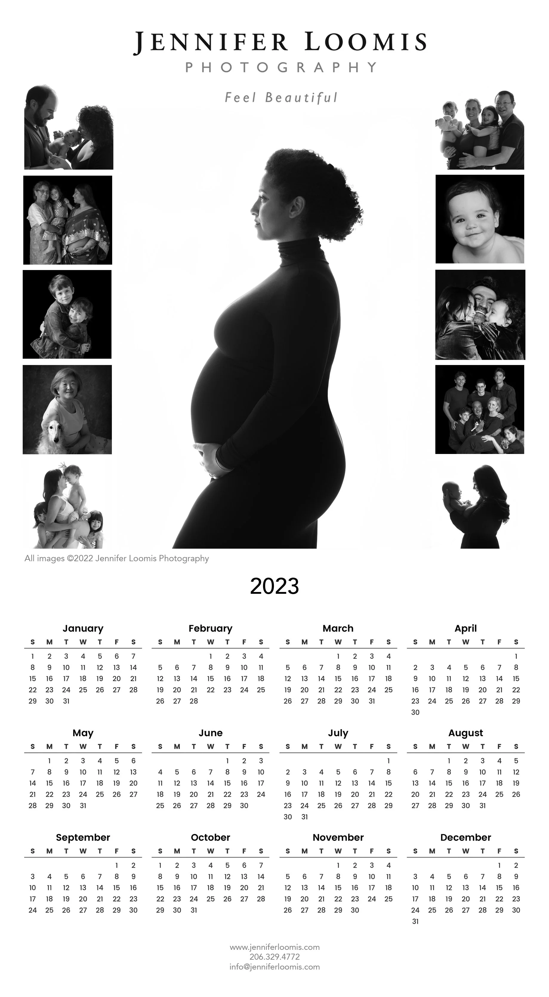 I select the best maternity, family and baby photography of the year to put on my annual calendar.